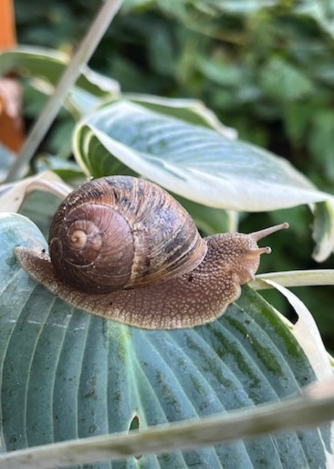 Gefleckte Weinbergschnecke raspelt an einem Blatt: H. v. Ahlften
